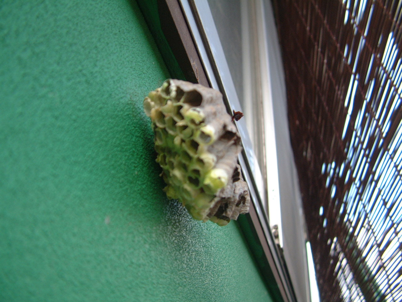 物置きの壁に今年もアシナガバチが巣をつくった。