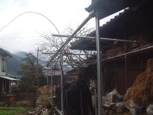 今年最初の作業はキウイ棚の拡張と剪定でした。