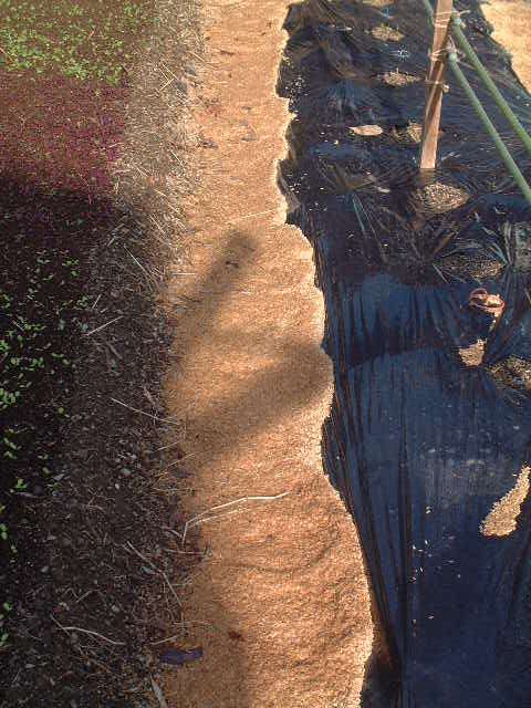 通路部分には大量のモミガラと剪定チップを撒きます。