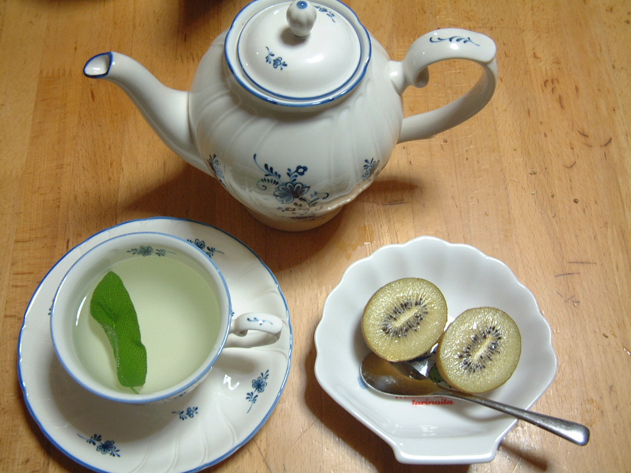 1.セージを軽く水洗いし、ティーポットに放り込みます。